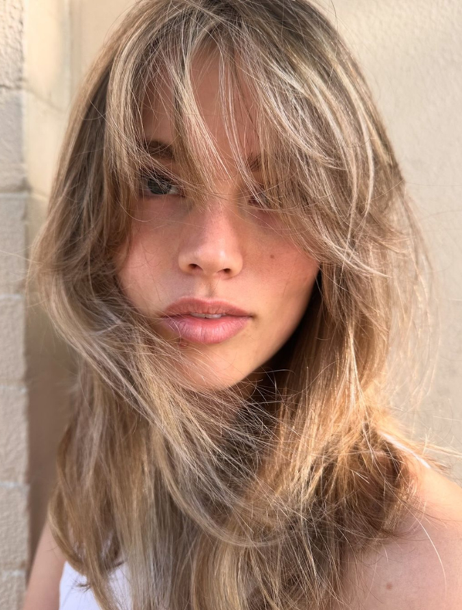 “I might be a little biased here but ‘70s Birkin Bangs will always be timeless in my hair bible and not just for 2024,” explains Anthony Nader, who says the key to the perfectly undone vibe of the look is subtle layers. “Layers that are slightly uneven and “broken” give this cut a soft and natural appearance,” he went on to say. “This haircut is especially great for those with natural waves because this hair texture gives that effortless free-spirited look with minimal styling.” Nader recommends steering clear of a clean, blunt cut fringe — “keep the look of your new bangs nibbled at… you want your bangs to look already lived in and soft right away.”