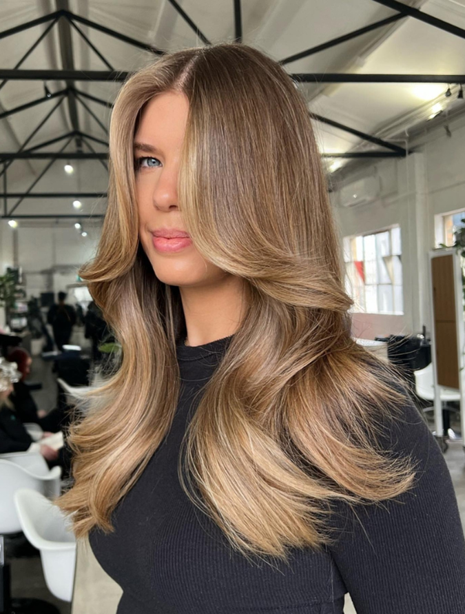 “This warm bronde is a stunning transformation colour that we're going to see a lot of in 2024,” explains Edwards. “It's a soft and golden, dimensional brunette that can work on all hair types and lengths.”