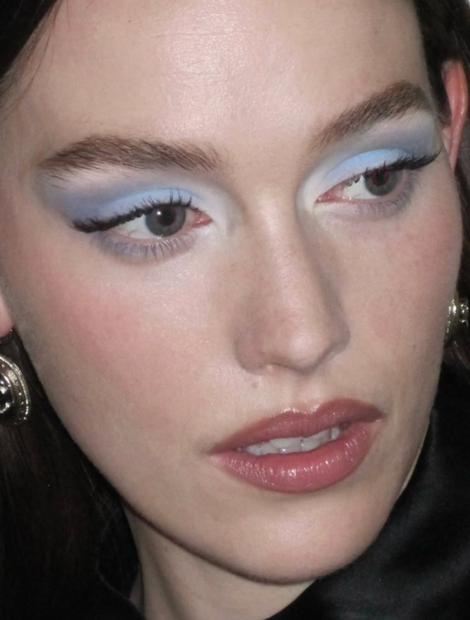 The new wave aesthetic of the '80s has been reimagined by a cohort of Gen Z and young millennials on Pinterest. Gone is the geisha white face makeup, and the sunset of blush and eyeshadow. Here, the trend's bold use of colour has been redefined by a skin care-obsessed youth that has been educated on the importance of a flawless blend since birth. Whether it's a pop of periwinkle blue eyeshadow on the lids or bubble gum pink on the cheeks, this makeup is concentrated and diffused in all the right places, with expert precision.