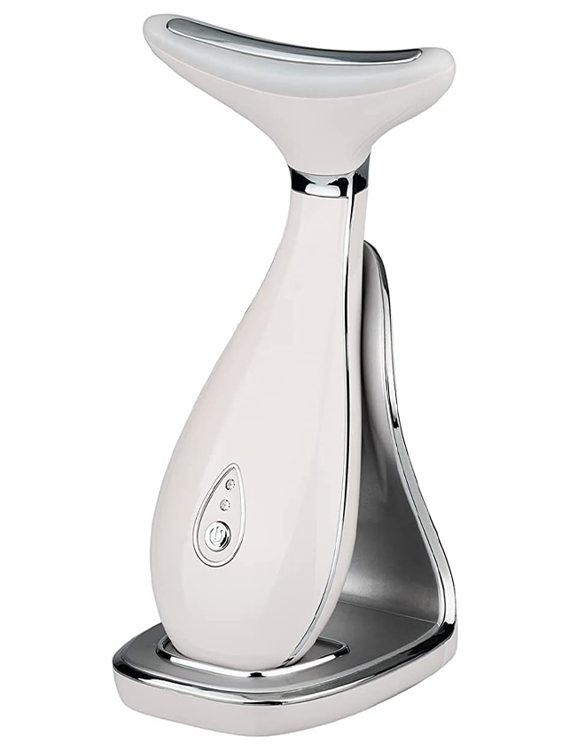 It might not look like it, but this beauty tool is the Swiss army knife of beauty tools. Yep, stay with us, we promise it's worth it. Okay so, this facial device not only massages (with the power of vibrational technologies), but it also utilises thermal power, heating up to a toasty 45 degrees. Yep, that's amazing, but there's more. It even harnesses three LED lights to be able to help your skin on whatever journey it needs to go. Told you, it's got everything in there!
