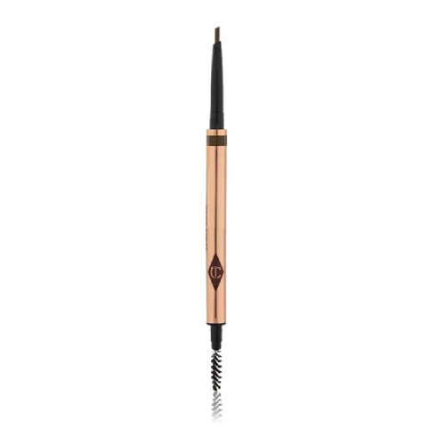 Dimoldenberg's brows are already pretty damn phenomenal, so a simple 'fill in' and 'brush up' strategy was put into place, using the Charlotte Tilbury Brow Cheat in 'Natural Brown' ($48 at Charlotte Tilbury) to fill in any sparse spots, and the Charlotte Tilbury Brow Fix ($48 at Charlotte Tilbury) to set them.