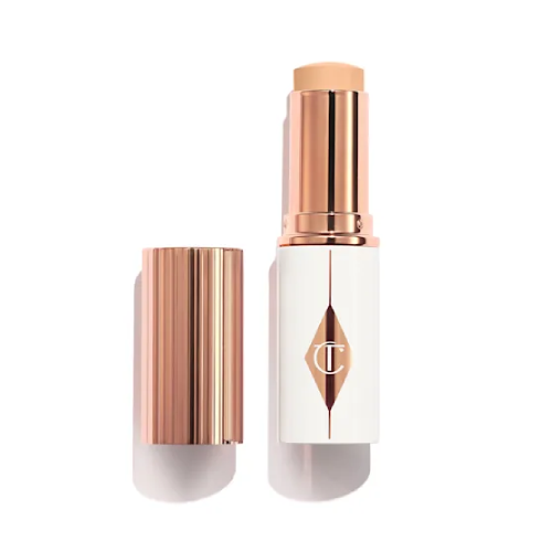 Personally, we're not sure we've ever seen skin look so gleaming, and so we obviously had to discover the trio of skin-perfecting base buys behind Dimoldenberg's glossy base aesthetic. Her polished complexion was the work of the sheer-but-buildable Charlotte Tilbury Unreal Skin Sheer Glow Tint Hydrating Foundation Stick in 'Shade 3' ($63 at Charlotte Tilbury), with the Charlotte Tilbury Beautiful Skin Radiant Concealer in Shades '2' and '5' ($51 at Charlotte Tilbury) used to brighten, smooth, and lift the look. And of course, because we always want to lock a look this good in for the long haul, a dusting of the Charlotte Tilbury Airbrush Flawless Finish in 'Fair' ($73 at Charlotte Tilbury) was the final touch.