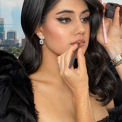 The trends she’s loving right now? “Dewy eyelids and a good lip combo.”
