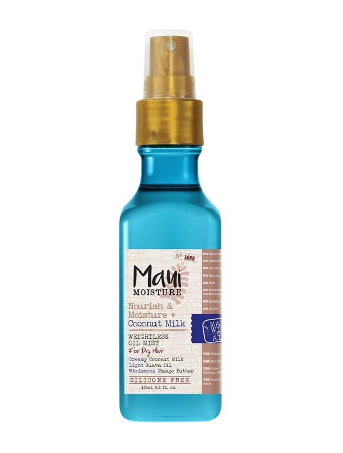 "[Then,] I set the hair with Maui Moisture Frizz-Free + Shea Butter Leave-in Conditioning Mist ($23.95 from Amazon) and defused until the hair was one hundred percent dry," he explained. "[And] before defining the style with an iron, I sprayed Maui Moisture Coconut Milk Weightless Oil Mist ($30.08 from Amazon) for added control and shine."