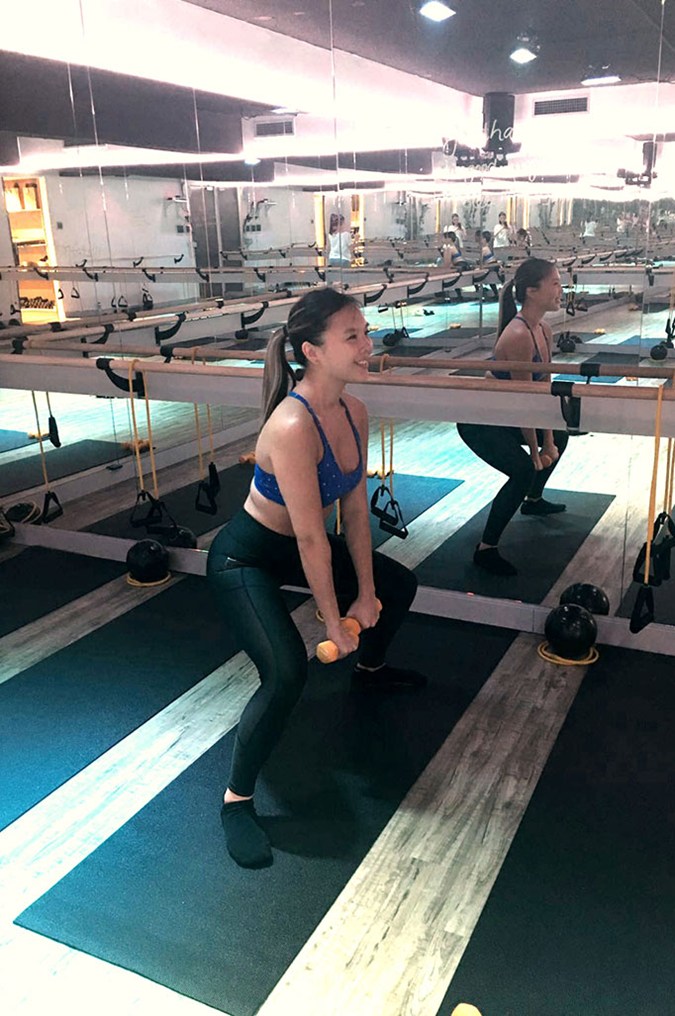 When it comes to ambience, Barre Sweat has got it sorted. Each class is held in a studio filled with full-length mirrors where you can check out your form while you’re exercising, and to really get you in the mood, lights are dimmed and there are even LED lights that change colour throughout the session. What is usually a chilled playlist at barre is replaced with pumping tracks at Barre Sweat, which make the 45-minute class go by in a flash. Yes, it is possible at one stage I forgot that I was actually working out.