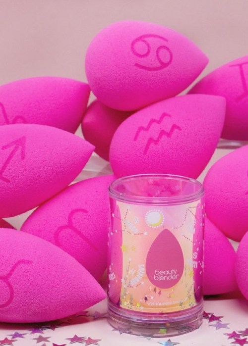 The new limited edition zodiac makeup sponges features each of the 12 zodiac signs: Aries, Taurus, Gemini, Cancer, Leo, Virgo, Libra, Scorpio, Sagittarius, Capricorn, Aquarius and Pisces, embossed onto the classic pink Beautyblender® sponge.