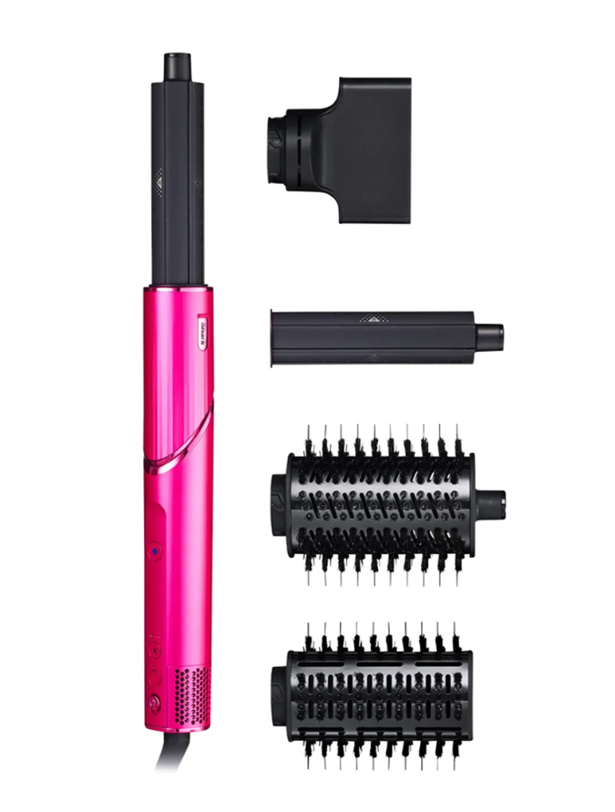Comes with 2 curling wands, 1 oval brush, 1 paddle brush and 1 hair dryer attachment
