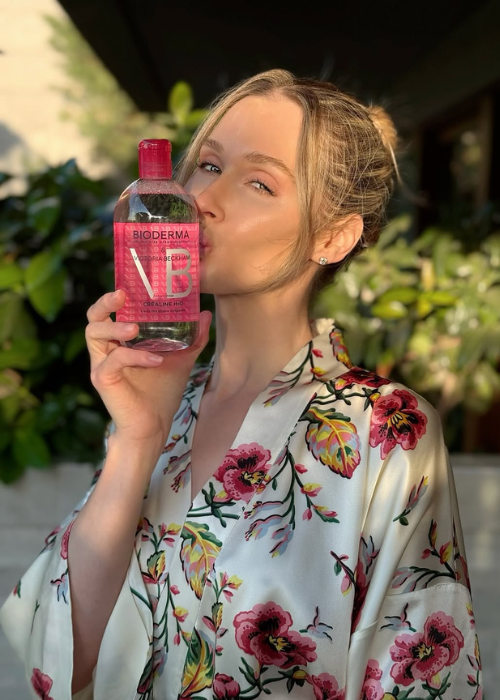 “I always have a mini bottle of Bioderma Sensibio H20 [Micellar Water Cleanser] ($10.99 from Chemist Warehouse) with me. I do a quick cleanse when I first board, and once again at the end of the flight, to prepare for in-flight treatments, and to remove dirt, grime and built-up toxins from the recirculated air.”