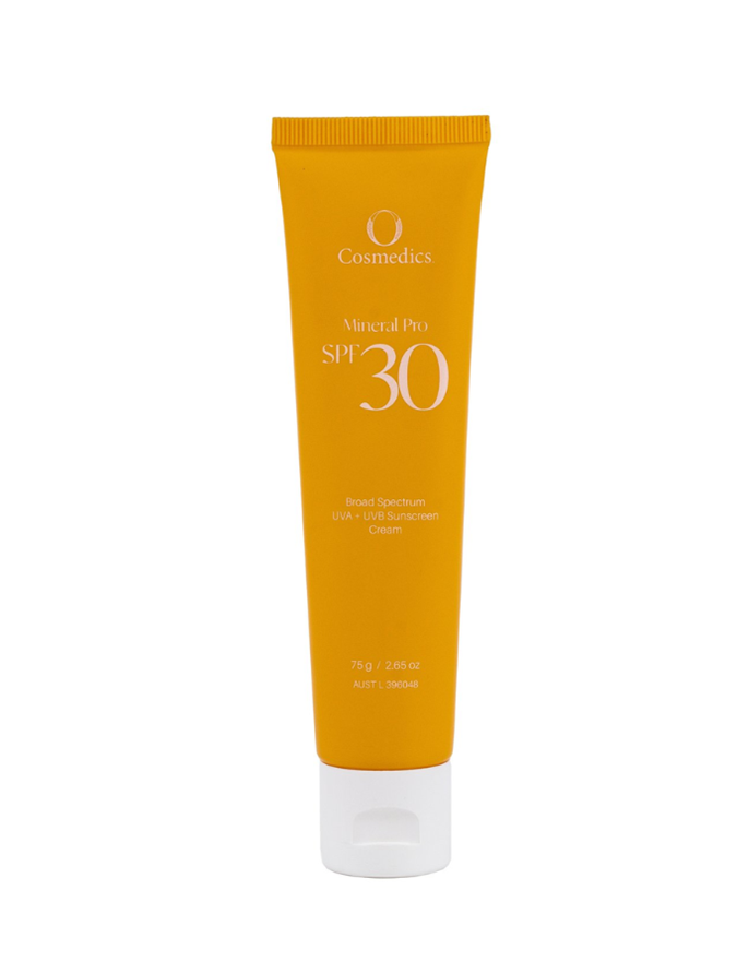 As the final step in her morning routine — at least 20 minutes before sun exposure — Osmo applies O Cosmedics Mineral Pro Untinted SPF 30+ ($54 from O Cosmedics).