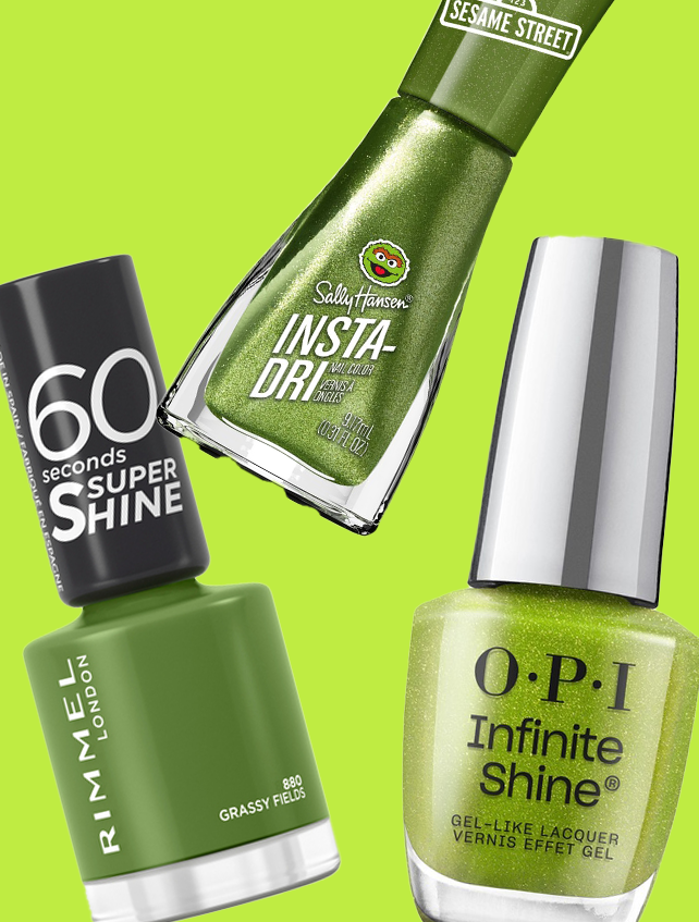 Because we feel that our best 'brat' selves would opt for a stand out glitter we've got two different tone options. The first light and bright shimmering tone is the OPI Infinite Shine in 'Limelight' ($24.95 at The Iconic). The second one literally leans towards more 'Oscar the Grouch' but still provides a layered lacquer of quick-drying colour. The polish in question? Sally Hansen's Insta-Dri Nail Colour in 'Sesame Street Scram' ($12.95 at Chemist Warehouse). And because we know not everyone loves a hit of glitter as much as we do (i.e. a lot) we've found the glossy-flat toned alternative, Rimmel London 60 Seconds Super Shine Nail Polish in '880 Grassy Fields' ($8.95 at Priceline).