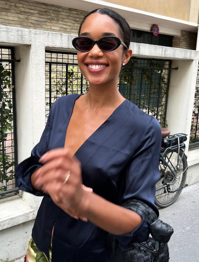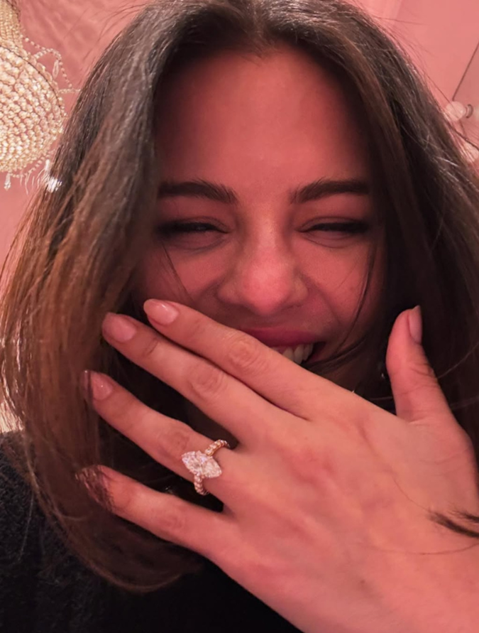 Laura Harrier's partner Sam Jarou popped the question in Paris in 2022 after three years of dating. The French native kept things simple and sweet to respect Harrier's desire for a lowkey engagement. However, the model and actress still made sure her nails were looking picture perfect for the occasion, painting them a quaint shade of tea rose.