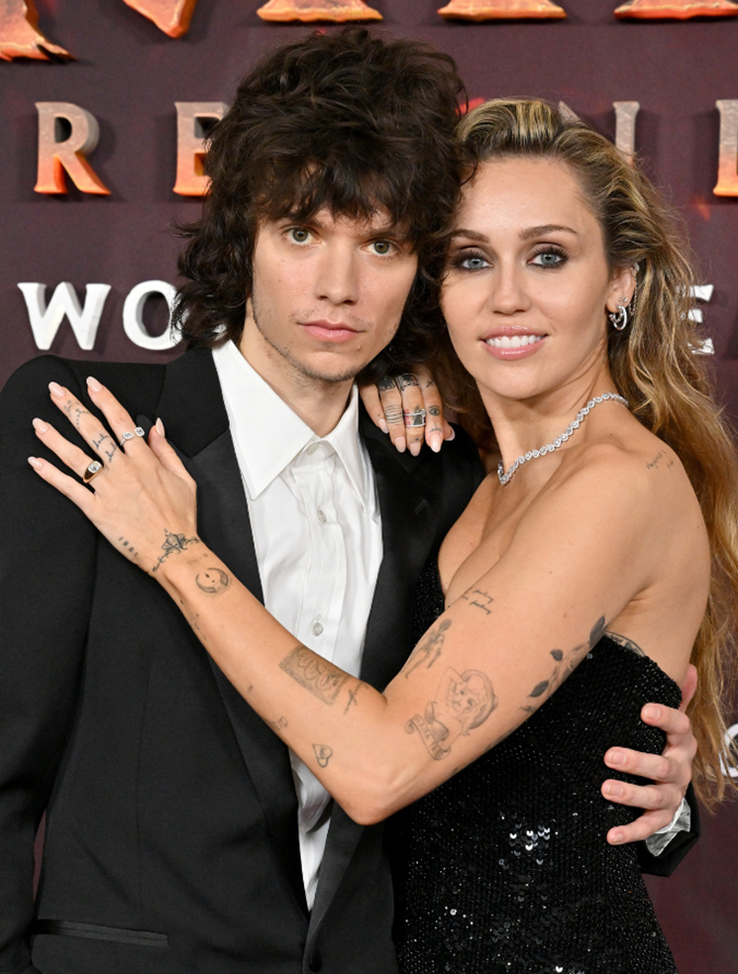 It's official! After four years with fellow musician Maxx Morando, Miley Cyrus is finally sporting an engagement ring. Cyrus flashed photographers the cushion-cut diamond and 14k yellow gold band bespoke Jacquie Aiche design at the Avatar: Fire and Ash premiere in Hollywood on December 1st. And obviously, we've spent all our time zooming in on the red carpet photos in a bid to get a closer look at her minimalist soap nails ever since.