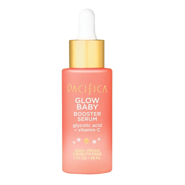 “I use Vitamin C across the board; there’s two [products] specifically that I love – one is [the] Origins [brightening serum], I use it for the daytime because it’s a little more matte. Then I also do [the same style formula from] Pacifica; I like it because it has glycolic acid as well – I am a little sensitive so I’ve got to be careful, but this is more of a nighttime product for me because it just has a different consistency. [I also love to] put a sheet mask on,” she says, naming a GlamGlow moisturising option as her go-to.
