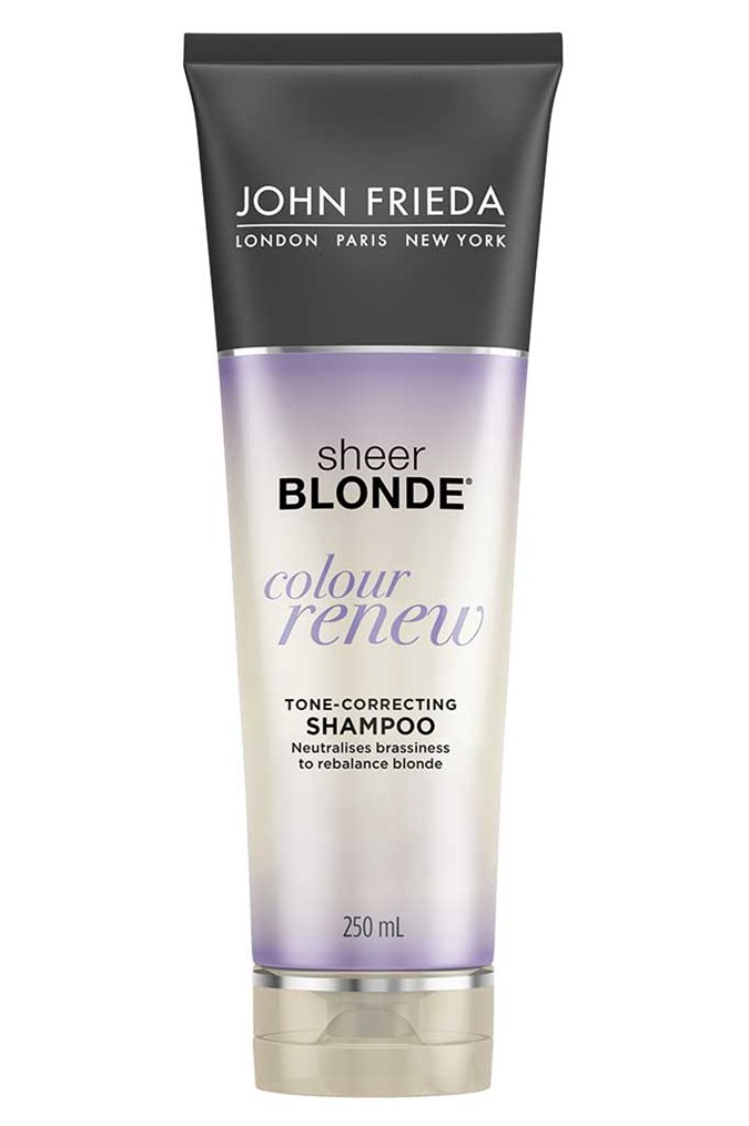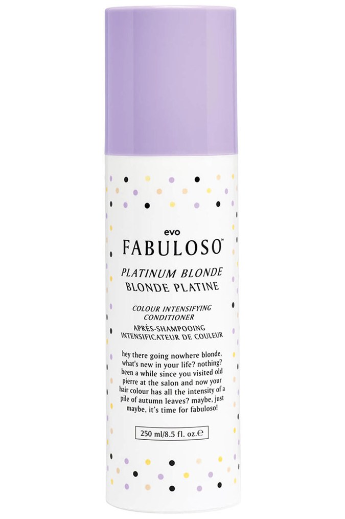 To preserve your colour between appointments, look for purple-toned hair products to reverse orange tones that may appear over time. “I love these pigmented shampoos to fight off brassy tones,” says Nader, “Use [one] once a week to treat your hair, or up to twice a week to maintain cool tones”. We like John Frieda Sheer Blonde Colour Renew Shampoo (our Review Crew® awarded it four stars!), EVO Fabuloso Platinum Blonde Colour Intensifying Conditioner (fine hair will love its lightweight formula), and Davines Alchemic Silver Conditioner as it’s super nourishing and loaded with jojoba to protect coloured hair.
