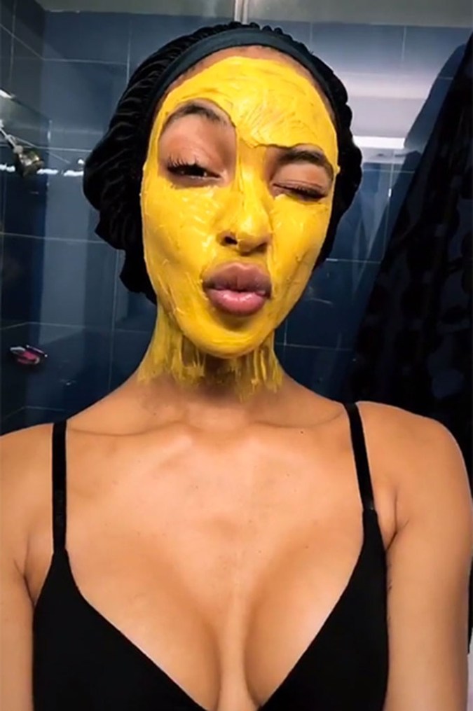 Taking to Instagram Stories to reveal her favourite homemade mask, Dunn shared that she likes to whip up a blend of turmeric (for brightening and controlling sebum), lemon (for evening out tone), honey (for hydration and glow) and yoghurt (for soothing the skin).