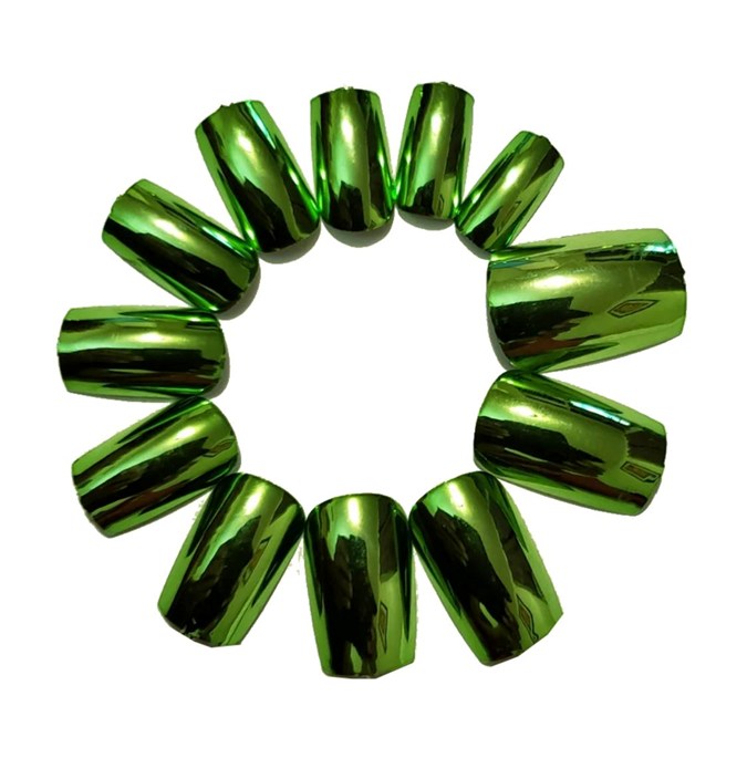 Want to try Lipa's look for yourself? If you're after the green, give the JeaniRo Metallic Green Mirror Nail Tips ($11.75 at Etsy) a go. If purple's more your vibe, the SerpentineNails Purple Chrome Press On Nails ($14.67 at Etsy) will work a treat. As for copper, we recommend TheNailShopbySB Rose Gold Chrome Press On Nails ($50.33 at Etsy).
