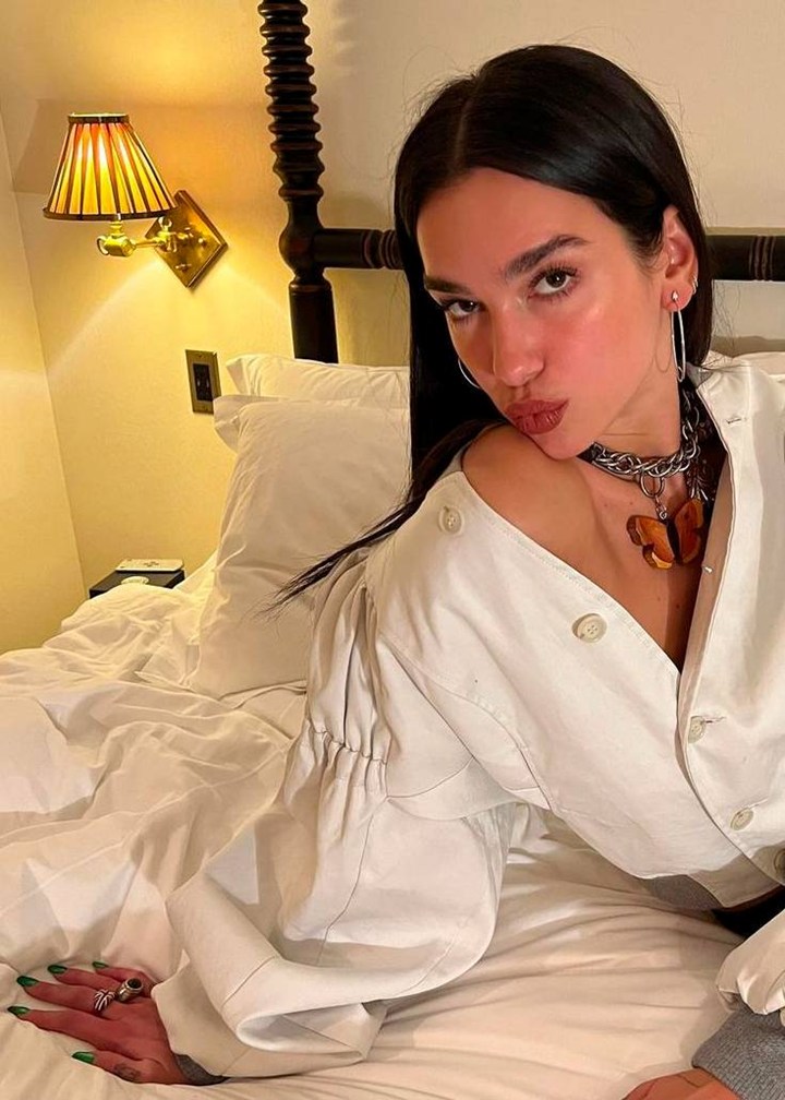 Molten metallic polish is the new nail art, according to Dua Lipa