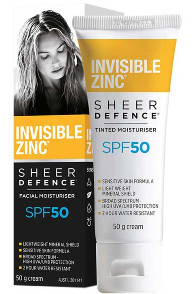 Invisible Zinc SPF 50+ Sheer Defence Tinted Moisturiser.