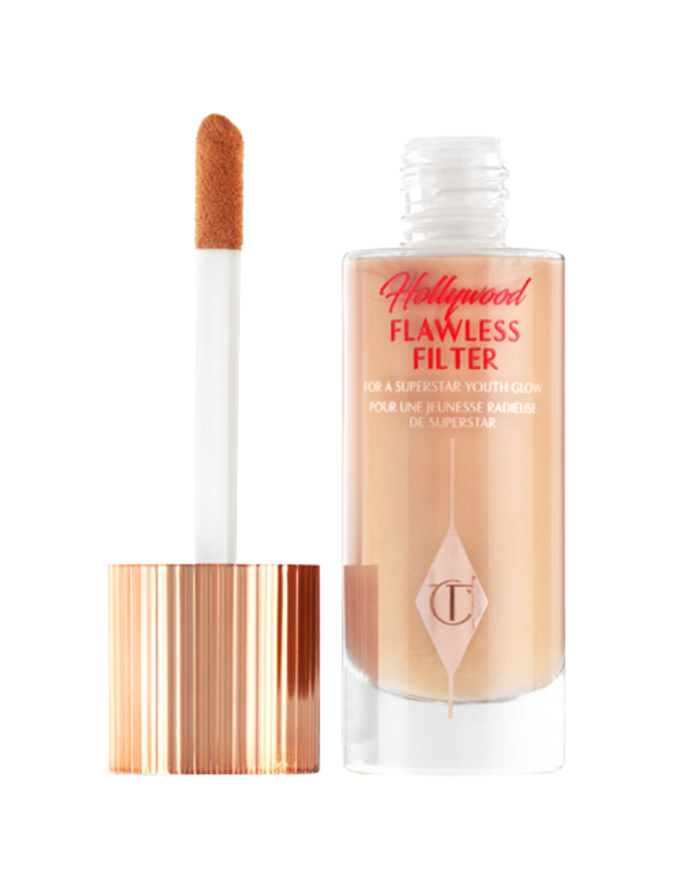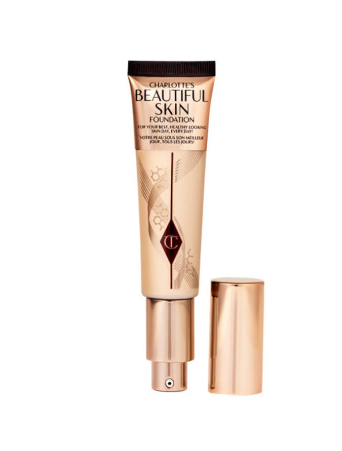 Goodwin then used Charlotte Tilbury's most lightweight base products to create a flawless finish that still looked like skin. She applied the Charlotte Tilbury Hollywood Flawless Filter in shade '2 Fair' ($70 from Charlotte Tilbury) all over the skin, then she minimised the appearance of dark circles and imperfections with the Charlotte Tilbury Beautiful Skin Radiant Concealer in shade '2' ($51 from Charlotte Tilbury), and finally she buffed the Charlotte Tilbury Beautiful Skin Foundation in shade '2 Warm' ($70 from Charlotte Tilbury) into the skin to unify Stone's complexion.