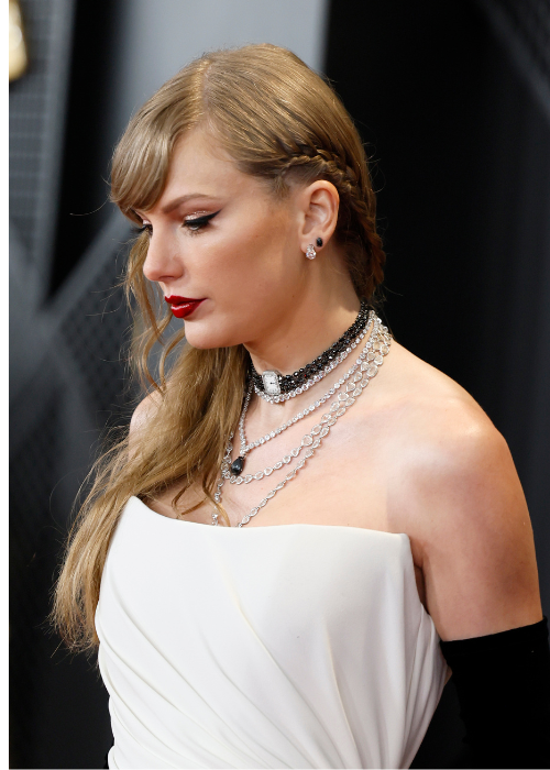 So we're not 100 per cent sure what aesthetic Swift's upcoming album 'The Tortured Poets Department' will channel. But given her black and white look at the Grammys (where she announced the album) and song names like "Clara Bow", a 1920s Hollywood starlet, we're getting Parisian beauty vibes. Think bows, baby braids and loose, textured waves.