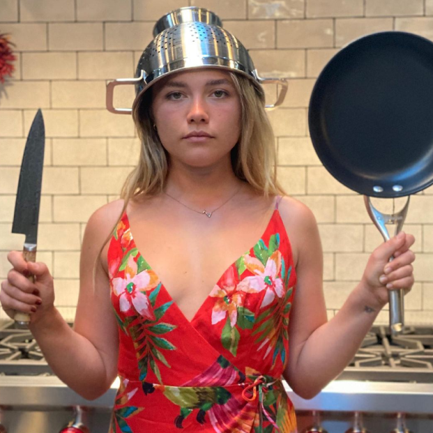 Florence Pugh is our very favourite kind of celeb: one who appreciates food and isn't afraid to show it. Honestly, we enjoy watching 'Cooking with Flo' (her delightful Instagram Live cooking series, where she manages to be both a culinary whiz and hilariously relatable) as much as we did Little Women. After all, anyone with "Tzatziki goes with everything.. Fact." in their Instagram bio is someone who takes snacking seriously.