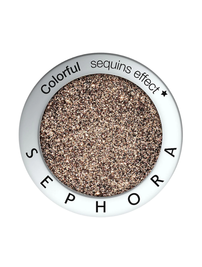 SEPHORA COLLECTION Colorful Magnetic Eyeshadow in ‘11 Big Bang’ ($14 at Sephora); DEAR DAHLIA Paradise Shine Eye Sequins in ‘Crystal Trance’ ($51 at Sephora); and MAKE UP FOR EVER Star Lit Diamond Powder Highlighter in ‘106 Green White’ ($41 at Sephora).