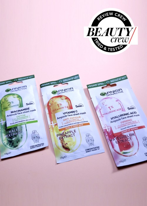 Beauty Crew sent Garnier Vitamin C Anti Fatigue Ampoule Face Sheet Mask, Garnier Niacinamide Detox Ampoule Face Sheet Mask and Garnier Hyaluronic Acid Firming Ampoule Face Sheet Mask to a panel of women aged 18 to 39 who love skin care and a cheeky face mask.