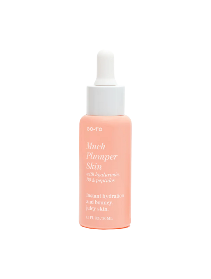 Last but not least, Go-To Skincare Much Plumper Skin ($48 from Go-To Skincare) is the lightweight hydrating serum that works for all skin types. It’s full of peptides, provitamin B5 and four types of hyaluronic acid.