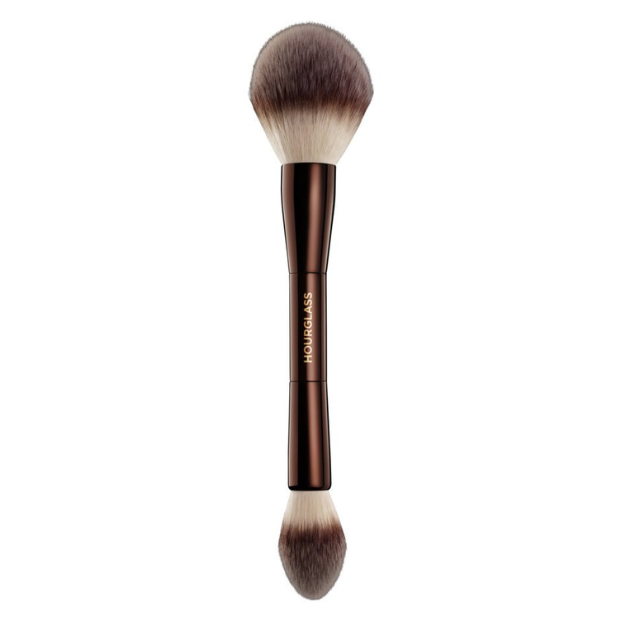 She then goes in with the Anastasia Beverly Hills Brow Gel in ‘Clear’ ($42 at Sephora) to brush up and set her brows before applying the Tom Ford Shade and Illuminate Contour Duo ($154 at Myer) cream bronzer to her cheekbones and forehead. She uses her go-to brush, the Hourglass Veil Powder Brush ($98 at MECCA) to buff, blend and perfect her base.