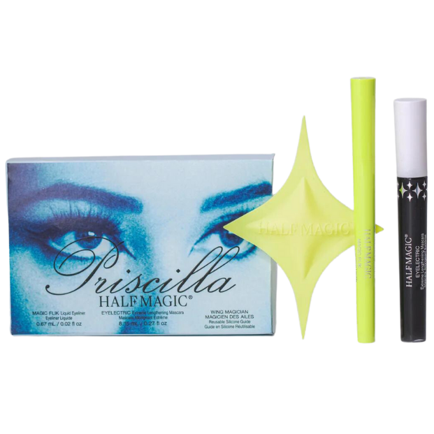 The kit includes everything you need to create a flawless winged eye: the Magic Flik Liquid Eyeliner ($36 at Half Magic), Wing Magician ($16 at Half Magic), and Eyelectric Extreme Lengthening Mascara in ‘Urchin’ ($40 at Half Magic). You can snag the Priscilla x Half Magic Set for $79 at Half Magic. And yes, the brand does ship to Australia (a rarity, TBH).