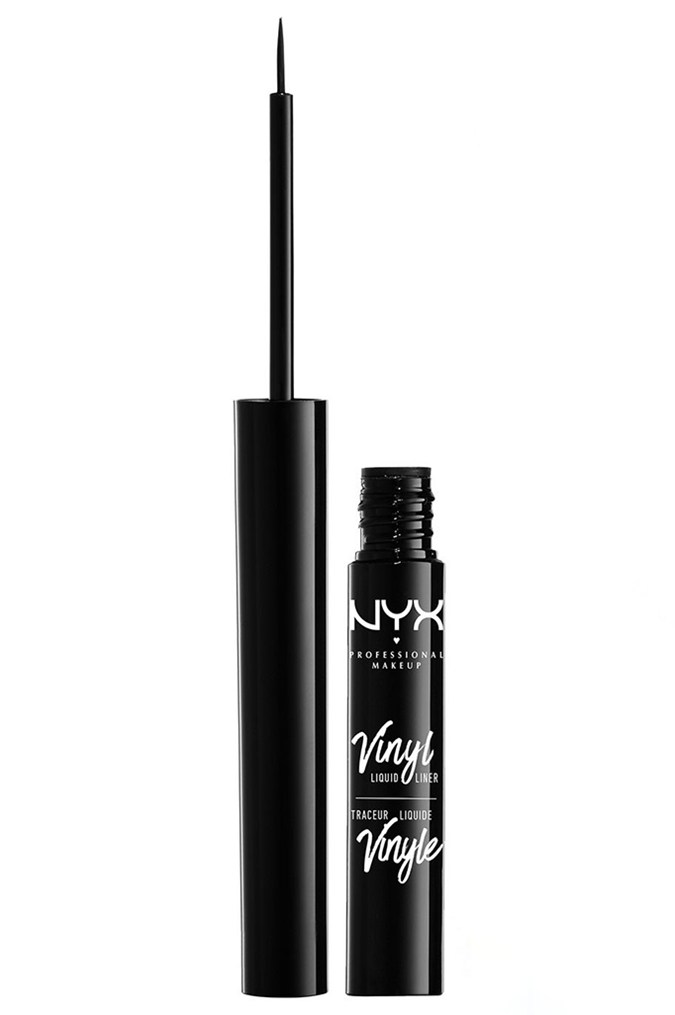 The first step is to create a classic winged eyeliner look on your upper lid using liquid eyeliner. Simply drag the eyeliner brush from the inner corner of your eye to the outer corner of your eye (using small, short strokes), before adding a flick at the end. We like using NYX Professional Makeup Matte Liquid Eyeliner, because the thin brush makes it easy to apply a precise, fine line.