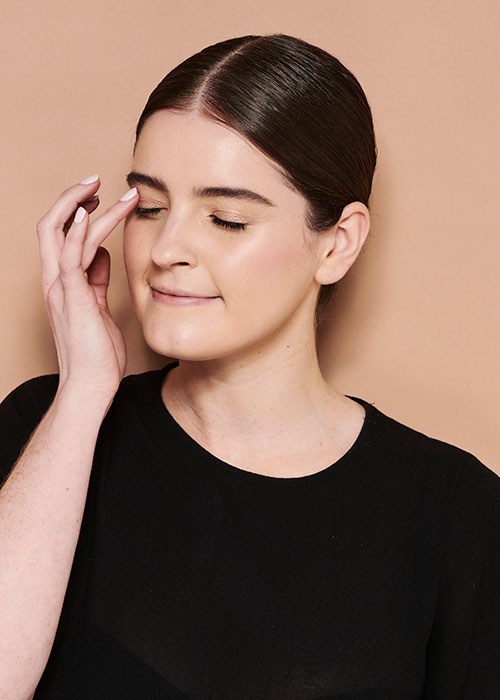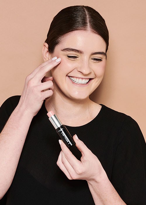 Using your fingertips, apply a cream blush to your cheekbones. The warmth of your hands will help the formula melt into your skin for a natural finish.