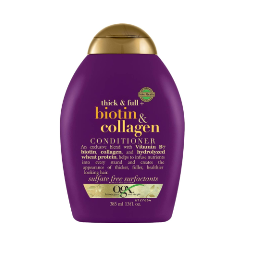 To add some serious moisture, try the deeply hydrating and argan oil-powered OGX Extra Strength Hydrate + Revive Argan Oil of Morocco Hair Mask ($25 at Woolworths). Or for a protein uplift, work the OGX Thick & Full Biotin & Collagen Conditioner ($23 at Woolworths) into your regular routine for a welcome hit of hydrolysed wheat proteins.