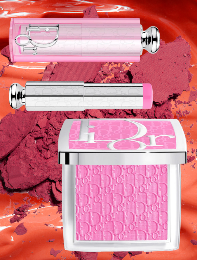 "Lately, I've been loving Dior Backstage Rosy Glow Stick ($79 from Sephora) as a creamy base, then setting it with the matching [Dior Backstage Rosy Glow] powder blush ($72 from Sephora)," she explained. "The cream blends seamlessly, and gives the skin that juicy, fresh flush, while the powder builds dimension, and locks in colour without [looking cakey]."