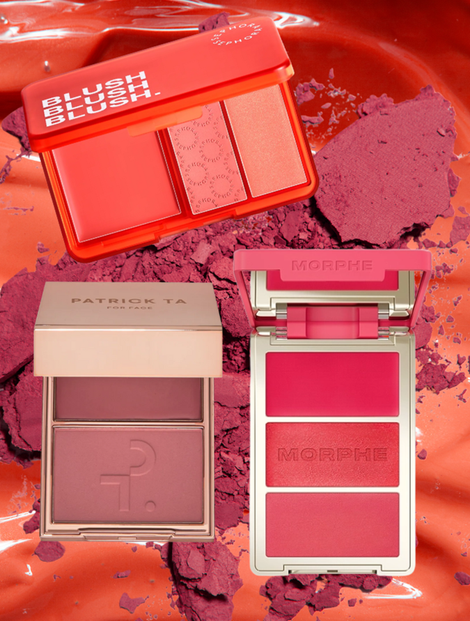 We like Patrick Ta's Major Headlines Double-Take Creme & Powder Blush in 'She Goes To The Gym' ($68 from Sephora), Morphe's Cheek Thrills Multi Finish Face Trio in 'Cabana Club' ($31 from MECCA), and Sephora Collection's Blush Blush Blush Palette in '02 Sunset Chaser' ($36 from Sephora).