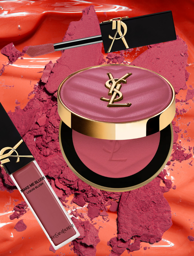 While, deeper skin tones can get away with berry shades like YSL Make Me Blush Blurring Liquid Blush in '54 Berry Bang' ($85 from YSL Beauty) and YSL Make Me Blush Bold Blurring Powder Blush in '54 Berry Bang' ($98 from YSL Beauty).