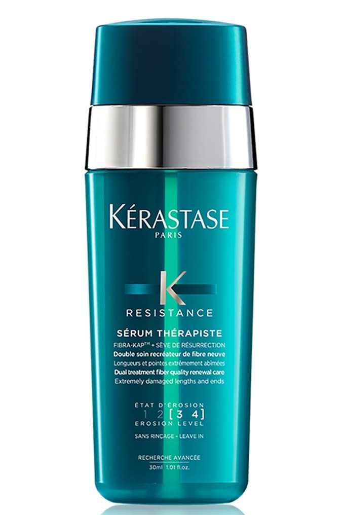 It’s also always a good idea to invest in a quality heat protectant for your ends. We love Kérastase Sérum Thérapiste. In addition to protecting hair from heats of up to 230 degrees, it works to bind, reinforce and resurface the hair fibre to effectively hydrate, soften and smooth strands.