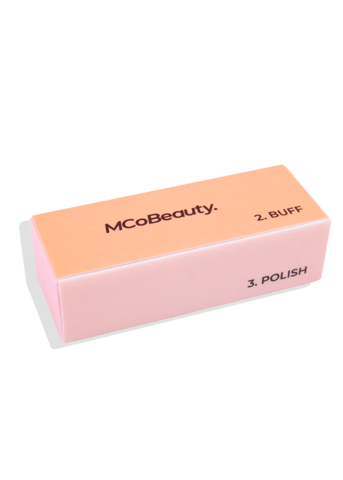 Instead of using a professional electrical filing tool like they use at the salon, you’re going to have to go the manual route. Using a nail file or a buffer like MCoBeauty 4-Way Buffing Cube ($4 from MCoBeauty), you’ll need to gently remove the gel top coat (the glossy layer) off the SNS on all 10 nails. Basically, each nail will need to go from shiny to matte in appearance. Getting rid of this protective top coat will make it easier for your polish remover to break down the hard colour in order to remove your SNS. Alright, we're off to a smashing start.