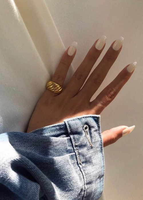 Rather than removing all aluminium wraps and realising it hasn’t dissolved properly (guilty!), check one nail first. Remove the foil and slightly press and rub an acetone-soaked cotton pad ($5.51 from Chemist Warehouse) over your nail in order to wipe off the dissolved dipping powder. You’ll know they’re ready because the polish will be gooey and mushy — it should rub off quite easily. Repeat on the rest of your nails, wiping each one clean with a paper towel. If the polish isn’t coming off easily, repeat steps #2 and #3 until it is.