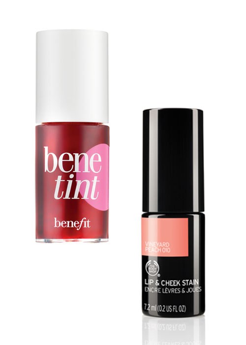 If you have fair skin, pick a product that has a pink tone, like Benefit BeneTint. For those with medium to olive skin, try a peach or coral tint, such as The Body Shop Lip & Cheek Stain in Vineyard Peach.