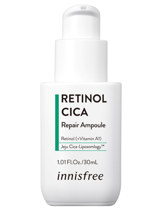 Comprised of the innisfree Retinol Cica Repair Ampoule ($54 at innisfree) and innisfree Retinol Cica Ampoule Focusing Patch ($18 at innisfree), the retinol-infused pair intrigued me, because as well as boasting a potent serving of retinol, they also contained a low-irritant complex.