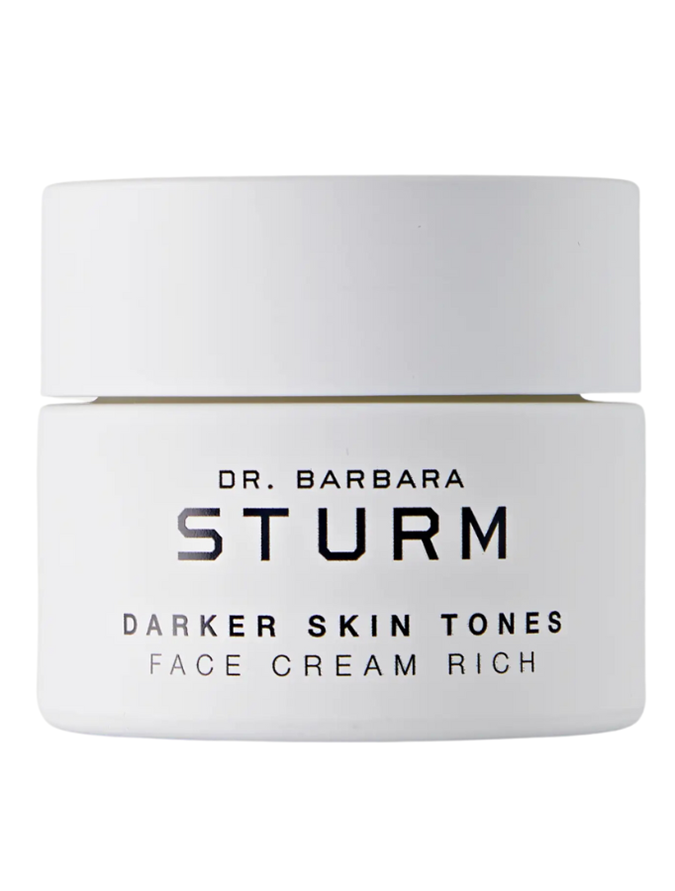 Then she applies Eminence Skin Care Citrus & Kale Potent C+E Serum ($199 from Eminence) to simultaneously moisturise and brighten, and follows it up with the Dr. Barbara Sturm Darker Skin Tones Face Cream ($279 from Net-A-Porter).