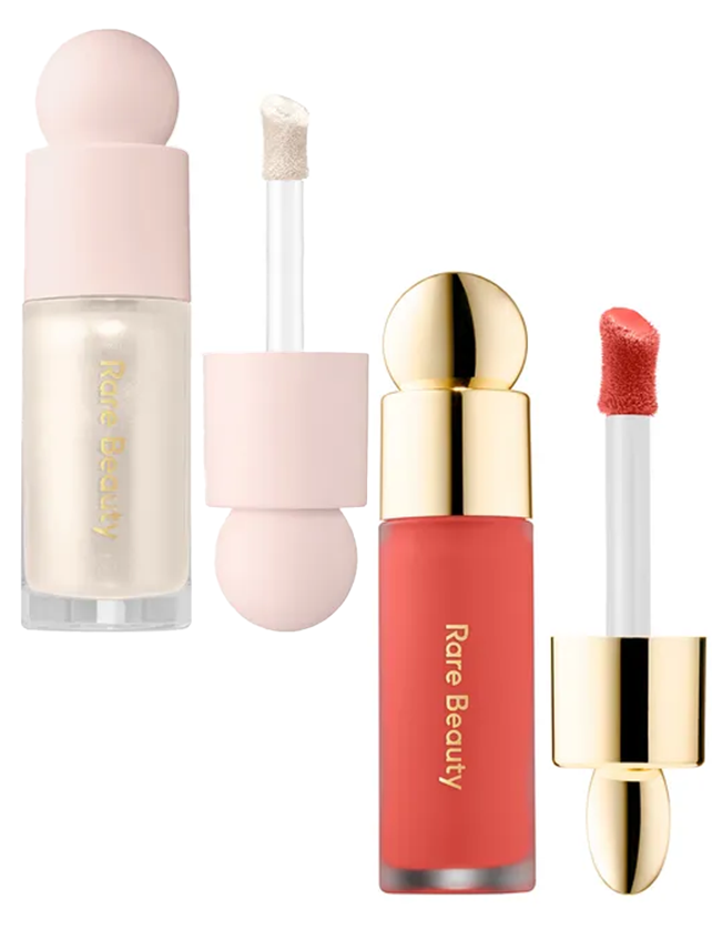 When you think of hyper-pigmented blush, who do you think of? Rare Beauty of course! The incredible Selena Gomez might need to go on our list of culprits when it comes to our love of blush because her liquid formulas offer the most powerful, creamy tones. To create this look, it's definitely not a one size fits all approach. But the duo of shades that stuck out the most to us were the Rare Beauty Positive Light Liquid Luminizer in 'Enlighten' ($49 at Sephora) and Rare Beauty Soft Pinch Liquid Blush in 'Joy' ($45 at Sephora). Stunning!