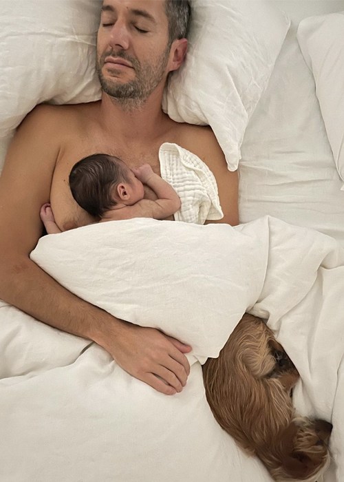 Born on the 3rd of March 2021, their son River Julién Rosenthal arrived via surrogate, and the family of three have been enjoying their “quiet, peaceful love bubble at home” since.