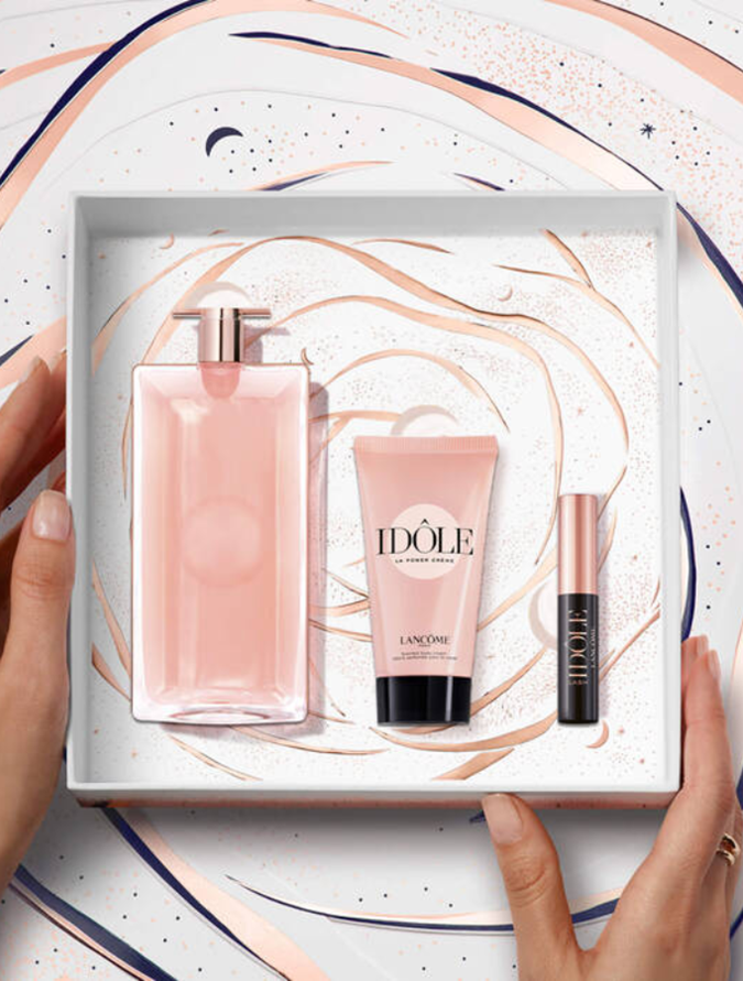 Lancôme La Vie Est Belle Soleil Cristal Eau De Parfum ($188 at Lancôme) / Lancôme Teint Idole Ultra Wear Foundation ($75 at Lancôme) / Lancôme Idôle Holiday Eye Look Set ($179 at Lancôme)