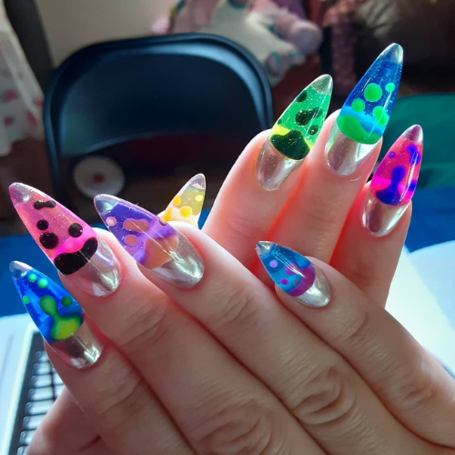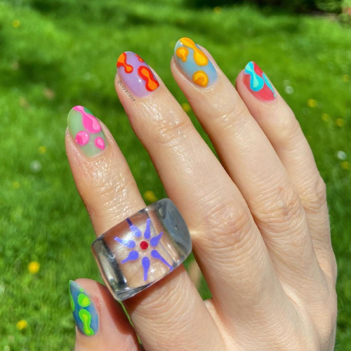 Scroll down for all the grooviest lava lamp nail sets we can’t get enough of atm.