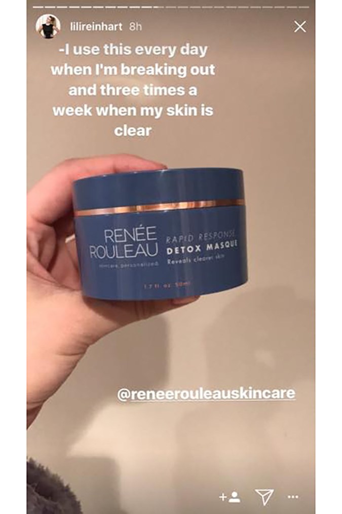 On top of regular facials with Rouleau, Lili also likes to use Rouleau’s at-home products to keep her skin acne-free and looking its best. In particular, she loves using Rouleau’s Rapid Response Detox Masque when she’s experiencing a particularly nasty bout of cystic acne. She explained not too long ago on her Instagram that she uses the acne face mask “every day when I’m breaking out and three times a week when my skin is clear”.