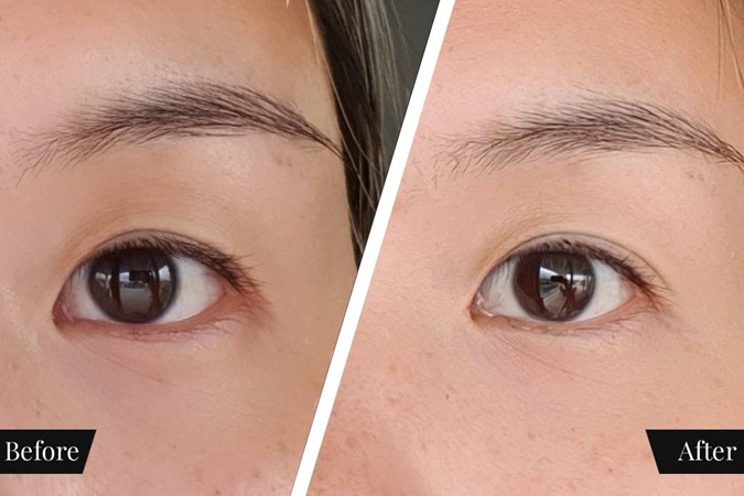 After each application, the skin around my eyes felt smooth and looked really even, and I put it down to its clever formula. Inside, there’s ingredients like immortelle essential oil (it’s 100 per cent organic, and is a hero ingredient in a lot of L’Occitane products), marjoram extract, caffeine and other botanical extracts like calendula and liquorice which all work together to minimise the appearance of fine lines, diminish dark circles and puffiness, and make you look more awake. Here’s a before and after photo I took to check in on my progress: