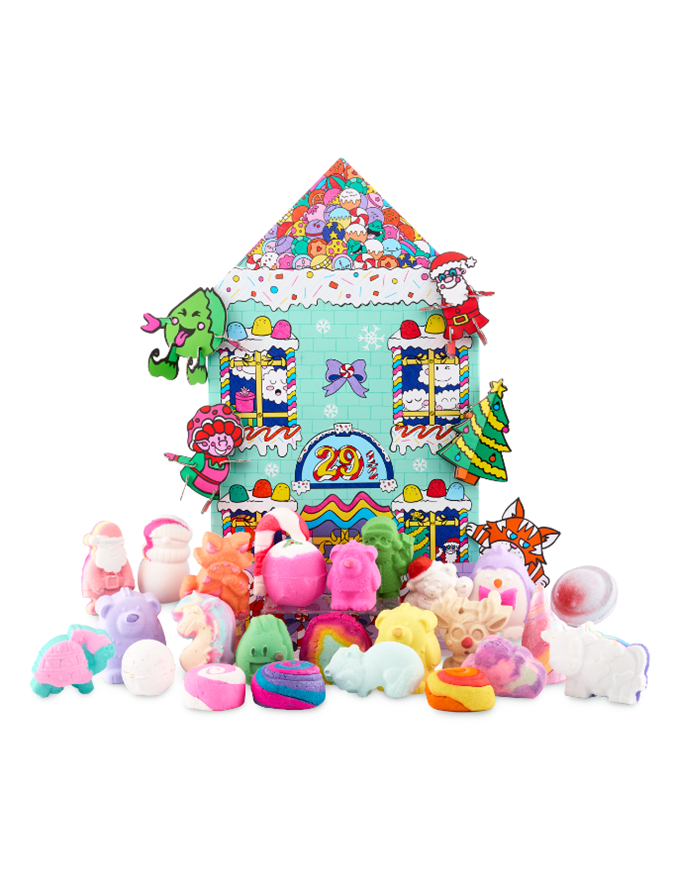 The calendar features 20 bath bombs from Lush's core line, as well as five holiday exclusive bath bombs, and five colourful 3D cardboard cut-outs.
