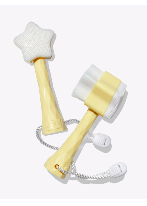 Once she's removed her makeup, she goes in with a face scrub and an exfoliating brush to get her face feeling extra fresh. "I’m currently on the Burt’s Bees Peach & Willow Bark [Scrub] ($33.95 at Cosmetics MegaStore)," she shared. "I use it with my Tarte [Sugar Rush Star Factor Cleansing] Face Brush ($21 at Tarte); one side’s a brush and one side’s an exfoliating shindig." Fancy!